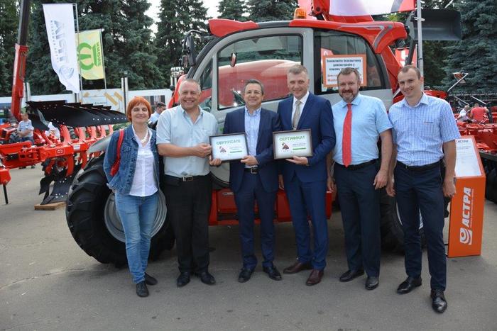 На выставке «Агро-2017» мы не только встречались с клиентами. По итогам опроса «Выбор агрария. Техника, которой доверяют» лучшим среди брендов телескопических погрузчиков был признан Manitou. В качестве подтверждения интернет-ресурс AgroPortal.ua передал сертификат представителям завода Manitou. Такой сертификат получила и наша компания как самый большой дилер Manitou в Украине.