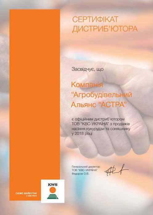 Рады сообщить, что компания «Агростроительный альянс «АСТРА» в 2018 году стала официальным дистрибьютором по продаже семян кукурузы и подсолнечника« КВС-Украина».