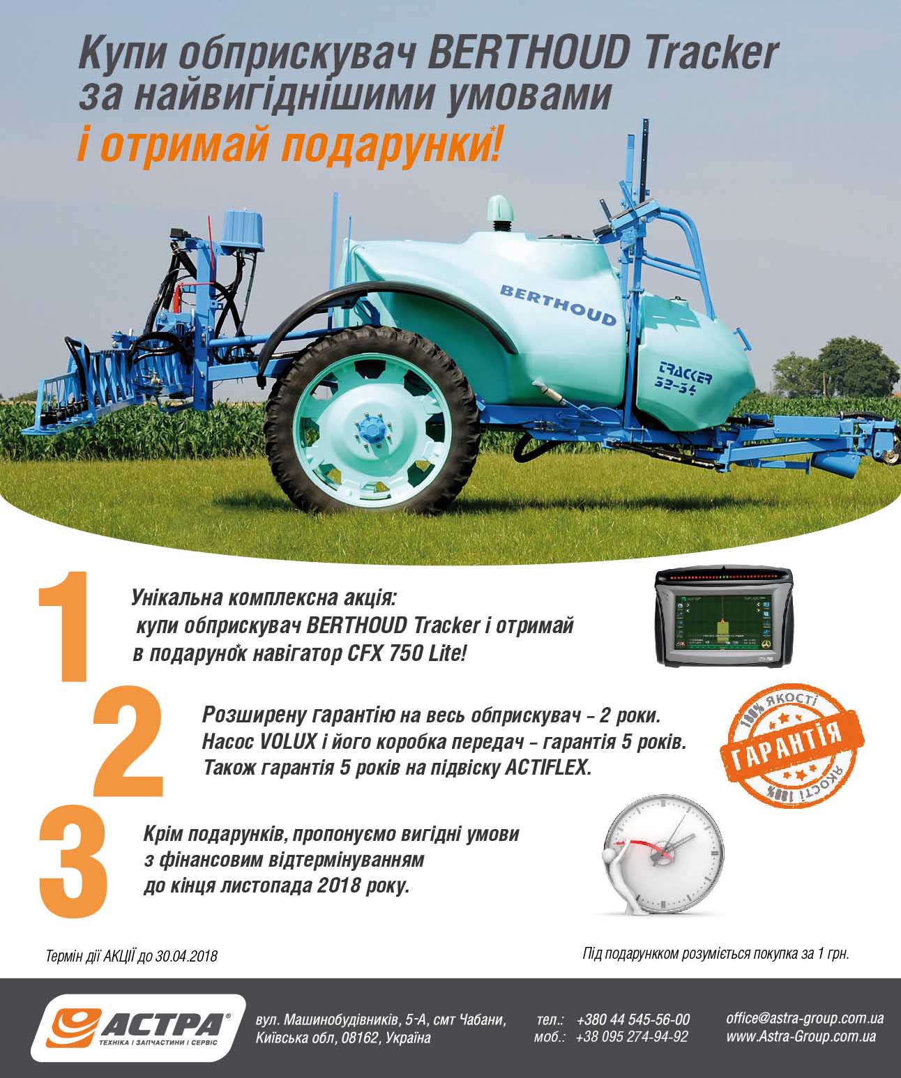 АКЦИЯ! Купи опрыскиватель BERTHOUD Tracker на выгодных условиях и получи ПОДАРКИ!
