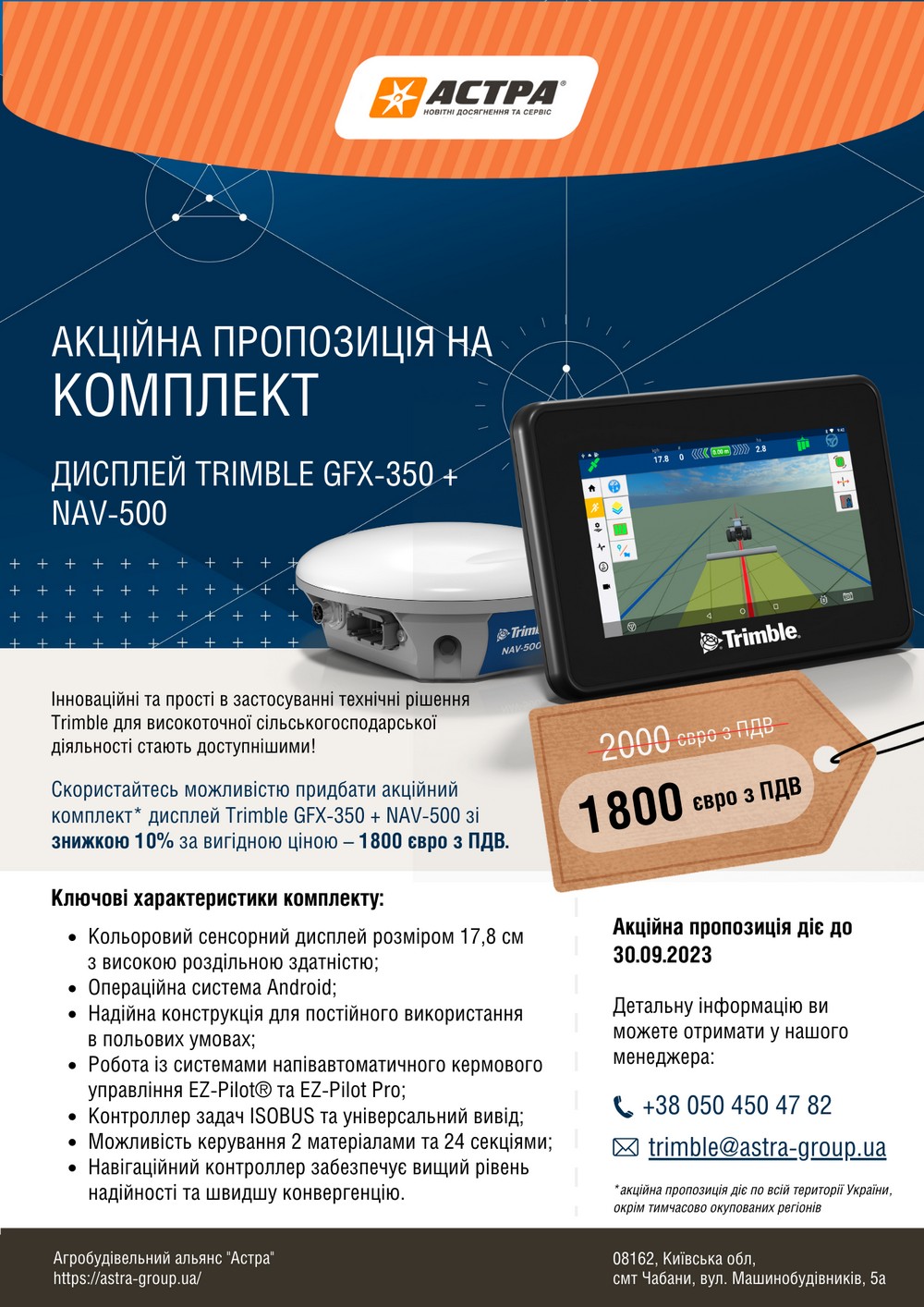 Акційна пропозиція на комплект дисплей Trimble GFX-350 + NAV-500 продовжується ще на 3 місяці!