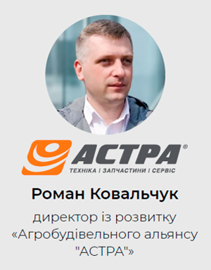 Компанія «Агробудівельний альянс "АСТРА"» — один із найбільших постачальників і сервісних операторів сільськогосподарської техніки в Україні, присутній на ринку вже понад 20 років. «АСТРА» спеціалізується на продажу нової і вживаної сільськогосподарської техніки, гарантійному сервісі та післягарантійному обслуговуванні устаткування, а також на продажу запасних частин і комплектуючих.