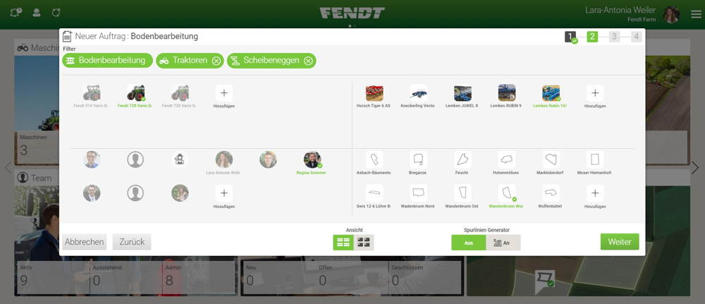 Нині більшість підприємств узгоджують робочі замовлення телефоном або через чат-програми. За допомогою функції «Fendt Task Doc: Створити замовлення» в FendtONE Offboard робочі замовлення можна запланувати напередодні ввечері лише кількома клацаннями миші і надіслати безпосередньо в машину. На початку робочого дня вся інформація, наприклад, про машину та навісне обладнання, оброблювану площу, а також точні дані робочого замовлення зберігаються в машині. Немає потреби в узгодженні особисто або телефоном, так що водії можуть відразу розпочати роботу. Ще одна перевага: усю інформацію видно з першого погляду, тому машини завантажуються оптимально.