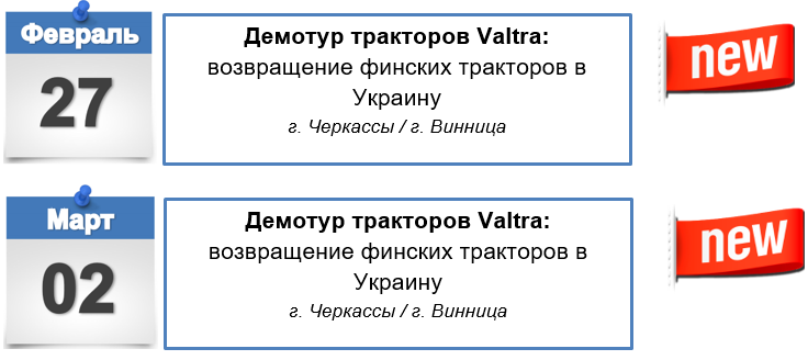 Компания АСА «АСТРА» рада сообщить вам о возвращении в Украину всемирно известного финского бренда колесных тракторов Valtra. Да, именно возвращении, так как в 2007–2009 гг. «АСТРА» уже поставляла тракторы Valtra в Украину. За такой короткий промежуток времени было продано более 20 единиц тракторов данного производителя, которые до сих пор успешно работают на полях Украины. Первые поставки новых тракторов начнутся с весны 2018 года.