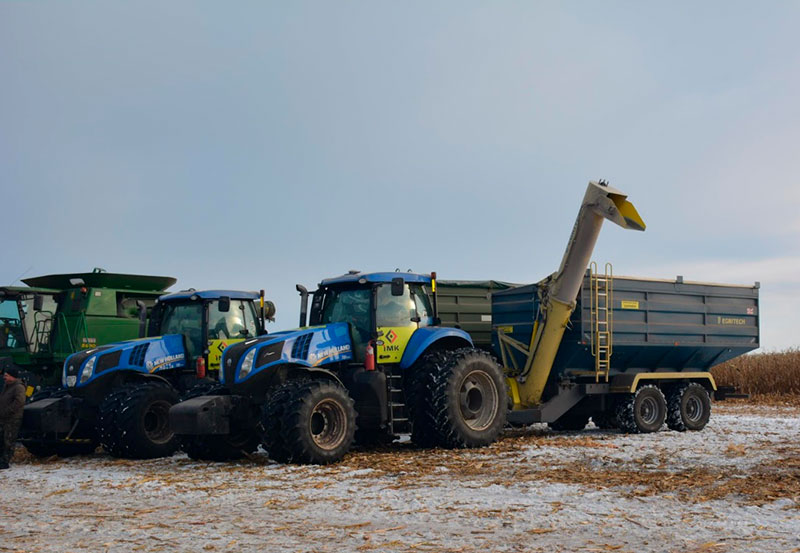 Наприклад, ви маєте три комбайни. У кожному з них є власний вбудований бункер об’ємом по 8 м³. Загальний сумарний об’єм усіх внутрішніх бункерів – 24 м³. Для того щоб забезпечити безперервну роботу кожного комбайна, вам знадобиться від трьох одиниць бункерів-накопичувачів перевантажувачів із мінімальним об’ємом кузова по 16 м³. Також із завданням впораються і два бункери-накопичувачі перевантажувачі з сумарним об’ємом понад 48 м³ або навіть один. При дотриманні таких умов швидкість збирання врожаю буде вища більш ніж на 25 %.