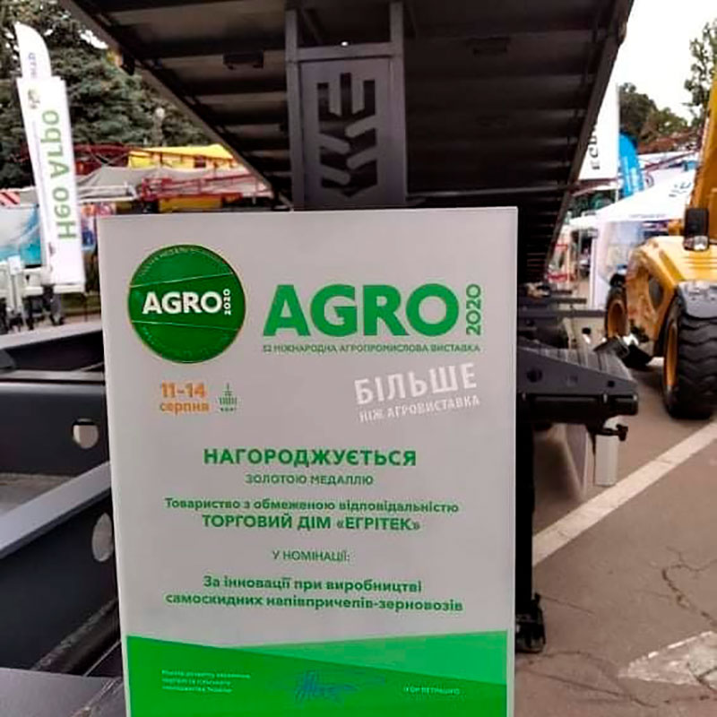А ще компанія Egritech отримала нагороду від «АГРО 2020» — золоту медаль у номінації «За інновації при виробництві самоскидних напівпричепів-зерновозів» за напівпричеп-самоскид НПС 2650. Вітаємо!