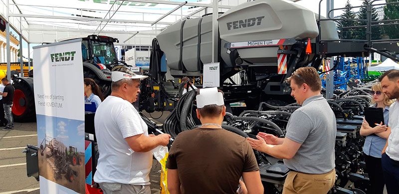 На «АГРО 2020» неможливо було не звернути увагу на найяскравіший стенд – AGCO/ Fendt. На стенді була представлена лінійка потужних тракторів Fendt, трактор Valtra, прес-підбирач Fendt Rotana, а також новинка 2020 року – революційна сівалка Fendt Momentum! Fendt MOMENTUM – наступний рівень удосконаленої точності, всі функції підготовки та транспортування сівалки розроблено для забезпечення максимальної ефективності.