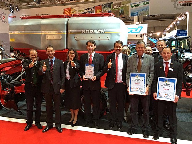 После вручения двух серебряных медалей фирма HORSCH получила еще одну награду: в области защиты растений опрыскиватель HORSCH Leeb был признан «Машиной года 2014» благодаря системе ведения штанг BoomControl.