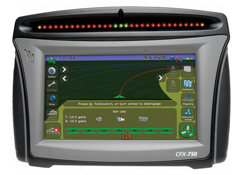 CFX-750 ™ ? це доступний багатофункціональний дисплей, що забезпечує ключові функції точного землеробства. Він може бути підключений до причіпного обладнання і керувати процесом сівби, внесення добрив та засобів захисту рослин. Інтуїтивно зрозумілий інтерфейс дозволяє легко налаштувати обладнання і виконувати повсякденні сільськогосподарські завдання. Крім того, дисплей може приймати супутникові та наземні сигнали корекції для автоматичного водіння трактора з точністю до двох сантиметрів. Працює з двома супутниковими системами GPS і GLONAS.