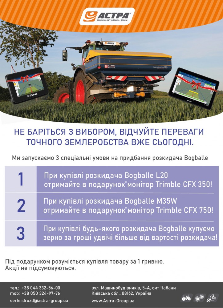 1?. При купівлі розкидача Bogballe L20 отримайте в подарунок монітор Trimble CFX 350!