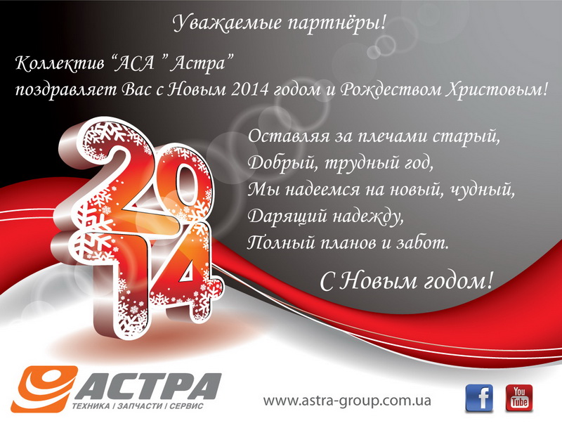 Примите наши искренние поздравления и пожелания счастья, удачи, плодотворной работы и оптимизма. Пусть новый 2013 год станет для Вас годом стабильности, согласия, воплощения в жизнь всех намеченных планов!