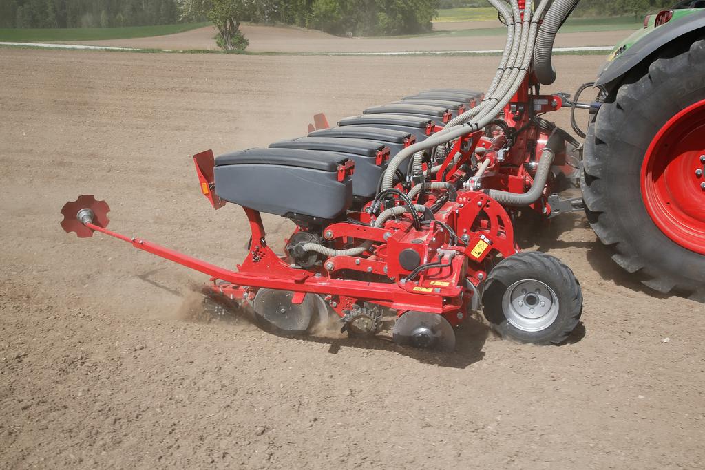 Головною особливістю нових Maestro є їхня універсальність і навіть (увага!), можливість проводити сівбу зернових культур! Це стало можливим завдяки великому центральному бункеру об'ємом в 2 800 л (односекційний бункер) або 3 500 л (двосекційний). На центральній рамі, на якій встановлюється бункер, передбачена чотириточкова навіска, за допомогою якої можна агрегувати просапну або зернову шину, а в майбутньому ще й використовувати цей бункер для локального внесення добрив при обробітку ґрунту. При цьому є можливість встановлення і бункера для внесення мікрогранул об'ємом 200 л, що робить цю комбінацію найбільш універсальною машиною на ринку просапних сівалок. Тільки уявіть: сівалка під час сівби може ще й локально вносити до трьох видів добрив!