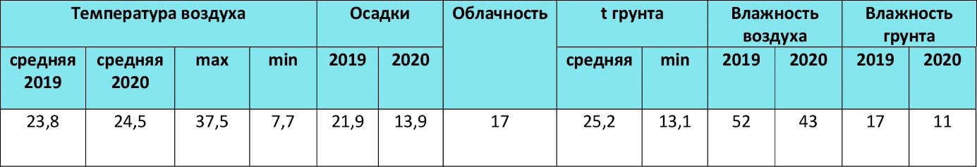 Метеоданные по Херсонской области за август 2019-2020 гг., по данным «Метео Фарм»