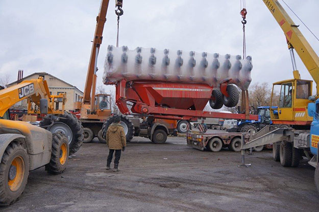 Ниже представлен фотоотчет, демонстрирующий, как сеялки отгружаются на заводе в Германии и как они выгружаются в хозяйстве в Украине.