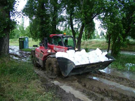 В городе Байа, что на юге Венгрии, машины Manitou принимают непосредственное участие в работах по защите от наводнения. Четыре телескопических погрузчика с операторами за рулем постоянно, днем и ночью, пребывают полной готовности. Как только поступает вызов, они незамедлительно выезжают, чтобы помочь решить проблему.