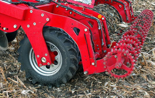Первая составная часть Horsch Tiger MT – двурядная дисковая борона с диаметром дисков 68 см и возможностью работать на глубину до 20 см. Расстояние между дисками 40 см в ряду, 20 см в двух рядах. Это обеспечивает возможность не забиваться агрегату во время работы в агрессивной среде.