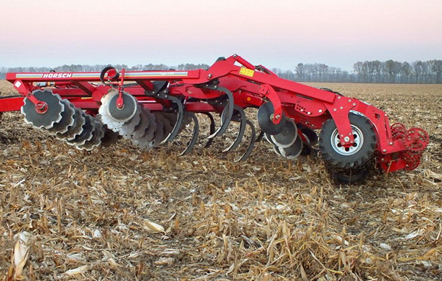 Итак, Horsch Tiger MT представляет из себя комбинацию тяжелой дисковой бороны и глубокорыхлителя, заменяя оба агрегата. Аббревиатура «MT» означает: кукурузный культиватор, тем не менее, Horsch Tiger 4MT способен также эффективно работать и под рапс, подсолнечник, на полях с полегшими зерновыми и высокостебельными сидератами. Глубина обработки составляет до 35 см.