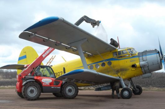 Когда пришло время удобрять посевы зерновых, в селе Гладосы Кировоградской области решили сделать это с помощью полевых самолетов Ан-2. Вот только как эффективнее загрузить их удобрениями? Конечно же, с помощью погрузчиков Manitou. Благодаря универсальному погрузчику с поставленной задачей справились отлично: загрузка прошла быстро, качественно и комфортно.