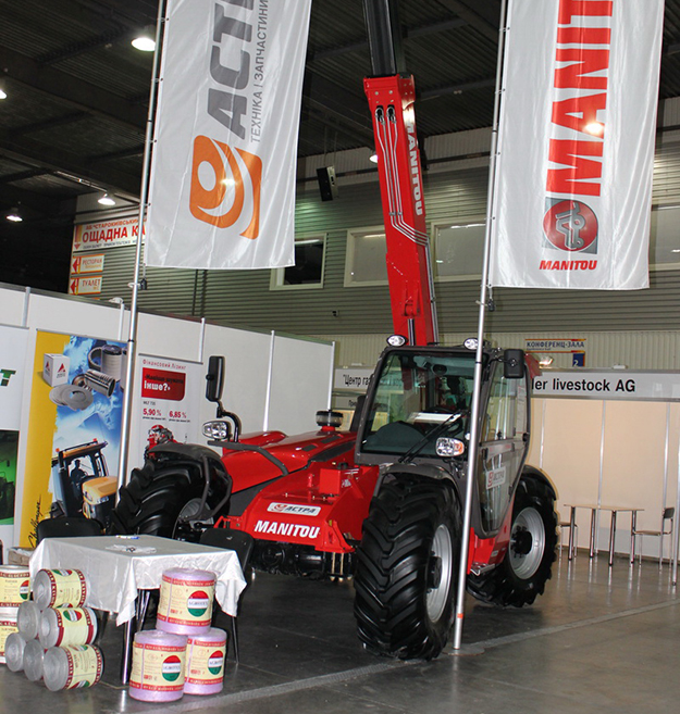 Встретиться со специалистами, ознакомиться с предложениями АСА «Астра» участники и гости могли на специальном стенде. Мы представили телескопический погрузчик Manitou MLT 735, запасные части и шпагат для увязки тюков Аgrotex.