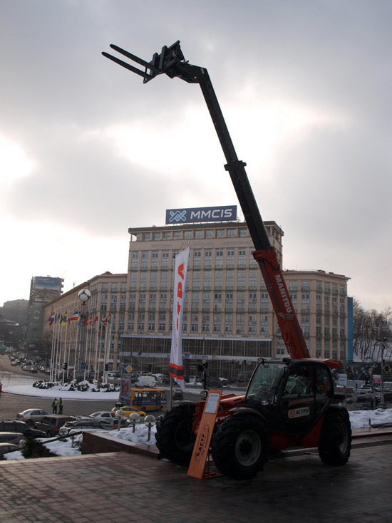 Перед входом в здание «Украинского дома» все желающие могли увидеть два погрузчика – Manitou MLT 735 и Manitou MLT 1035, предоставленные компанией «Астра» для ознакомления участников конгресса.