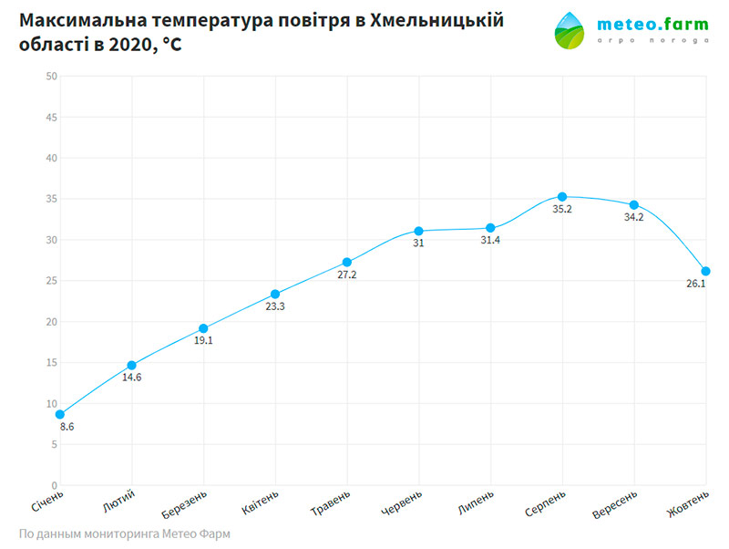 Що стосується температурних показників, то максимальна температура в Хмельницькій області становила +35,2 °С у серпні.