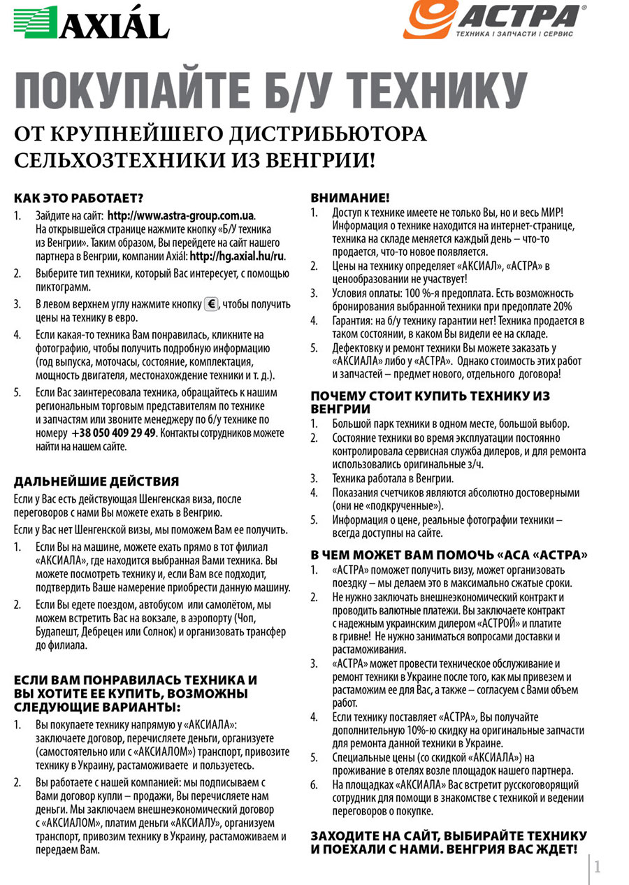 ТрактораЗерноуборочные комбайныПогрузчикиОпрыскивателиБороныПлугиКультиваторыГлубокорыхлителиСеялкиРазбрасывателиОросительные системыЖаткиПресс-подборщикиПрицепы и ЗерноперегрузчикиБ/У техникаБ/у техника из УкраиныБ/У техника из Венгрии — Техника › Б/У техника › Б/У техника из Венгрии Погрузчики Manitou Трактора до 280 л.с. Трактора 250-400 л.с. Опрыскиватели КомбайныДля выбора или просмотра техники перейдите на этот сайт HG.AXIAL.HU