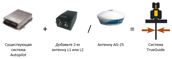 Система TrueGuide™ – это “пассивная” система управления для сельскохозяйственных агрегатов. Она использует автоматизированную систему рулевого управления Autopilot™, позволяя трактору и прицепному агрегату двигаться по одной линии.